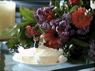 Top layer of cake & bridal bouquet